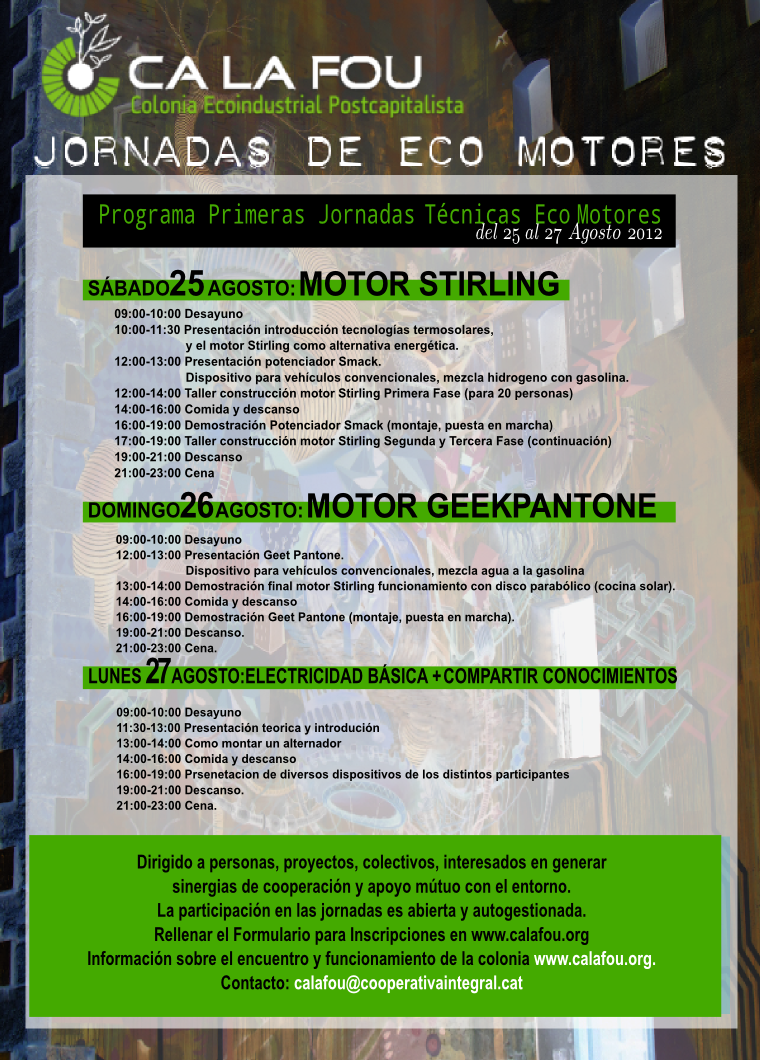 10:00 / 11:30 Presentación introducción tecnologías termosolares, y el motor Stirling como alternativa energética.